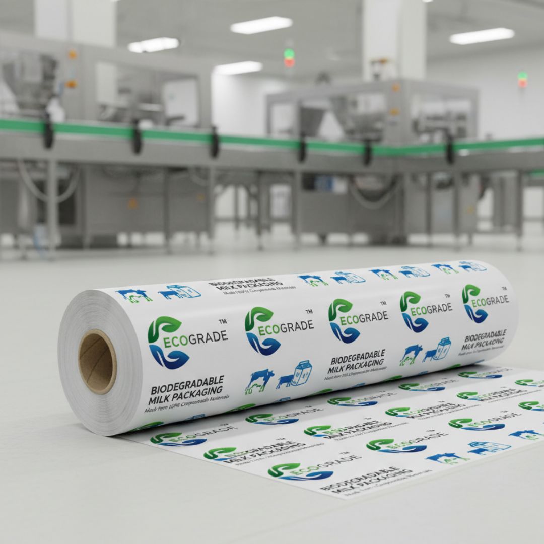 Preserve freshness the eco-friendly way with biodegradable milk packaging rolls — made from 100% compostable, food-grade materials. Designed to replace conventional plastic film rolls, these rolls ensure safe, hygienic, and sustainable milk packaging for dairy producers and distributors.
